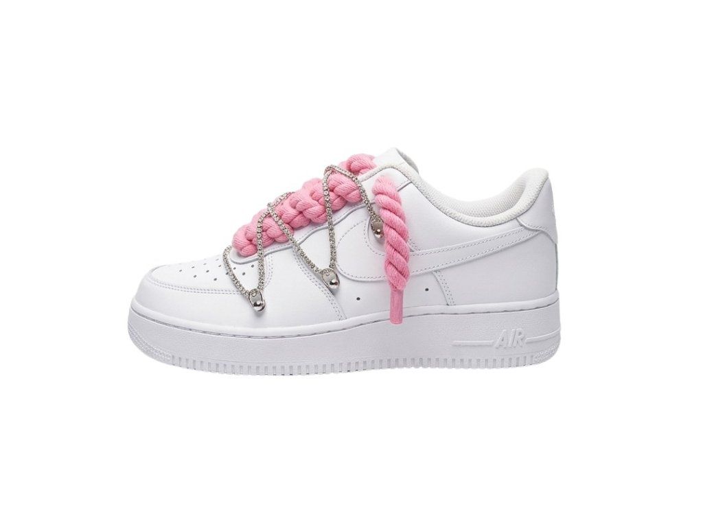 Nike Air Force 1 White Double Rope Laces Pink Silver